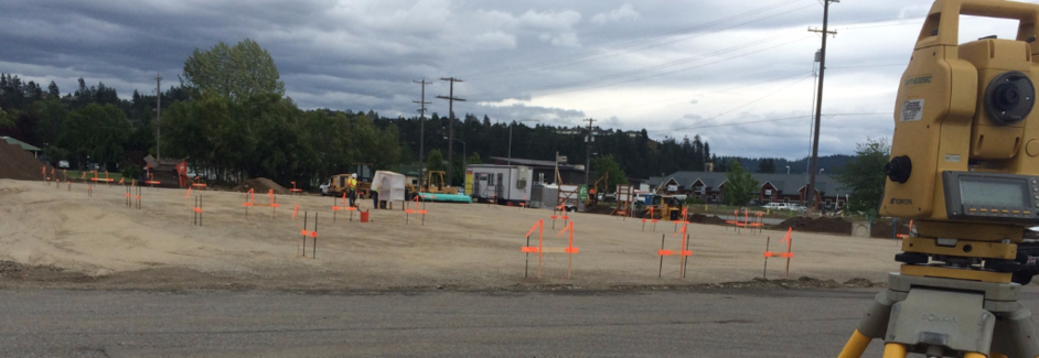 Our surveyors provide construction staking services including field layout for architectural design, fixed engineering work layout (including buildings, water lines, sanitary & storm sewers, roads, curb/gutter, and sidewalks, bridges, etc.) and "as-built" verification of constructed features.